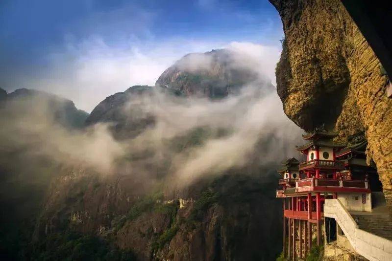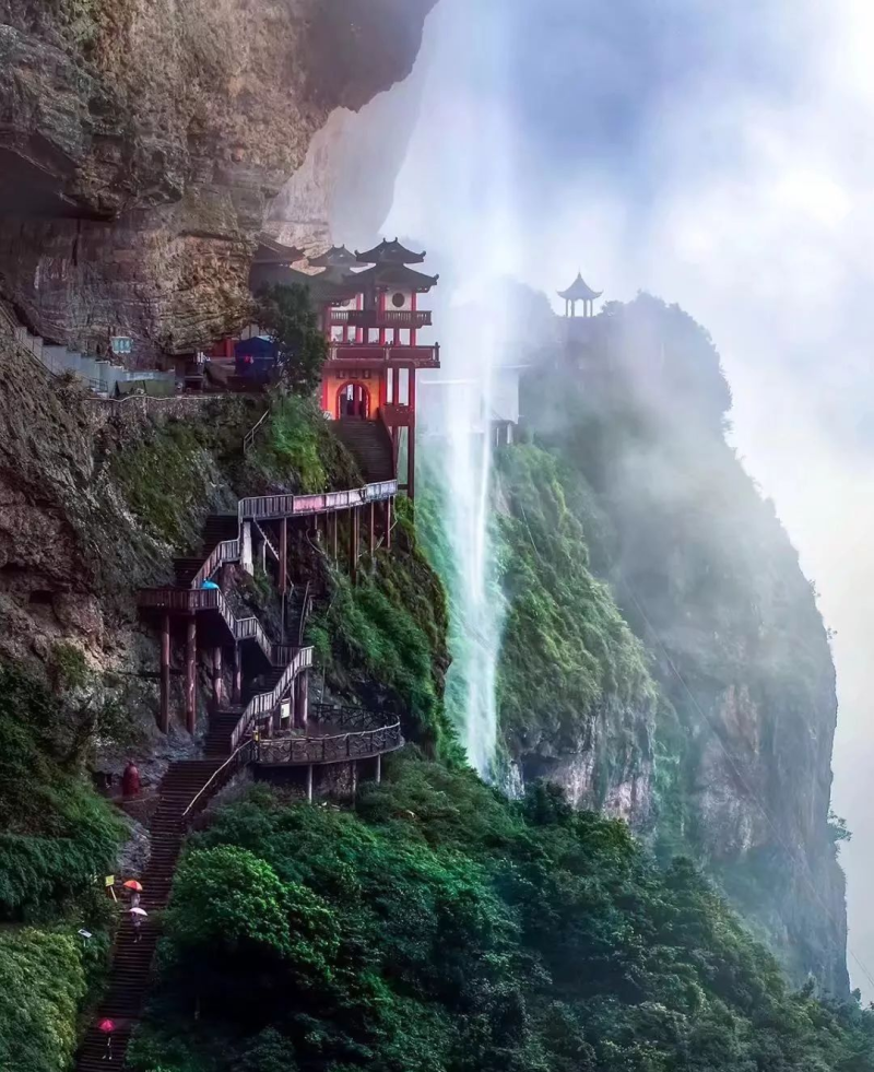 灵通山距离灵龙谷景区约10公里,开车20分钟左右。山上建的灵通寺素有“中国第一悬空寺”之称,建于悬崖绝壁之上,它巧妙的利用了地形的优势,仿佛藏在一条“瀑布”里,超惊艳!千百年来依旧香火鼎盛。