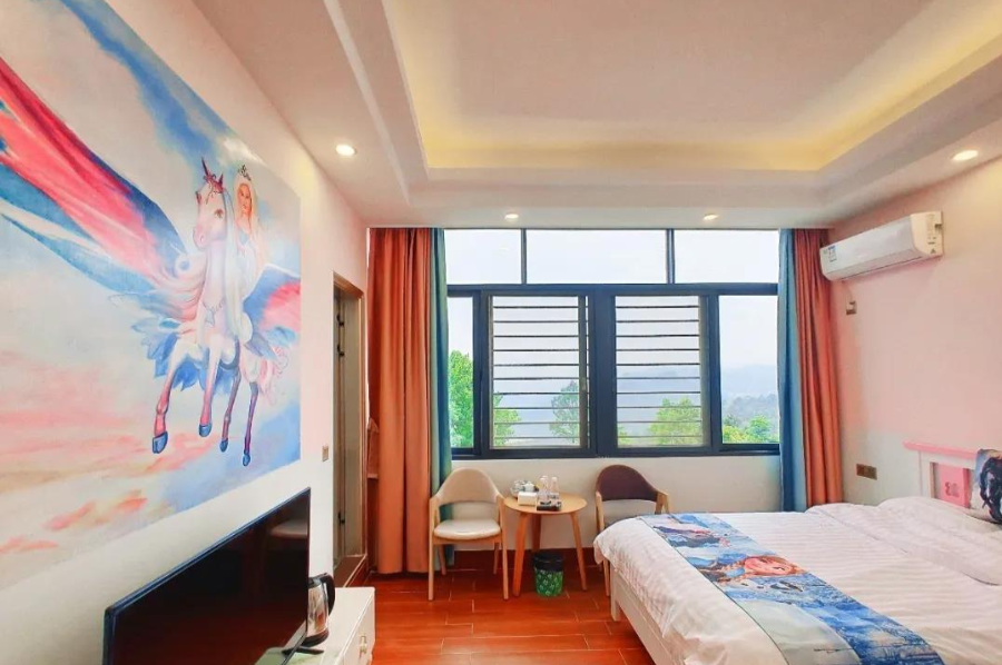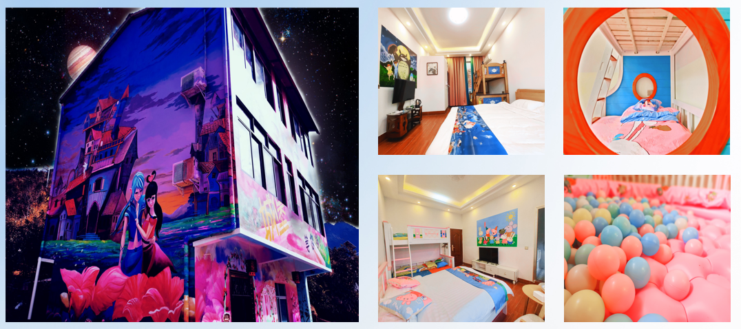 亲子房一共拥有七个主题,屋内的每个房间都有不同风格色彩、根据不同的动漫主题配套设施,让小朋友仿佛走入了童话世界里!