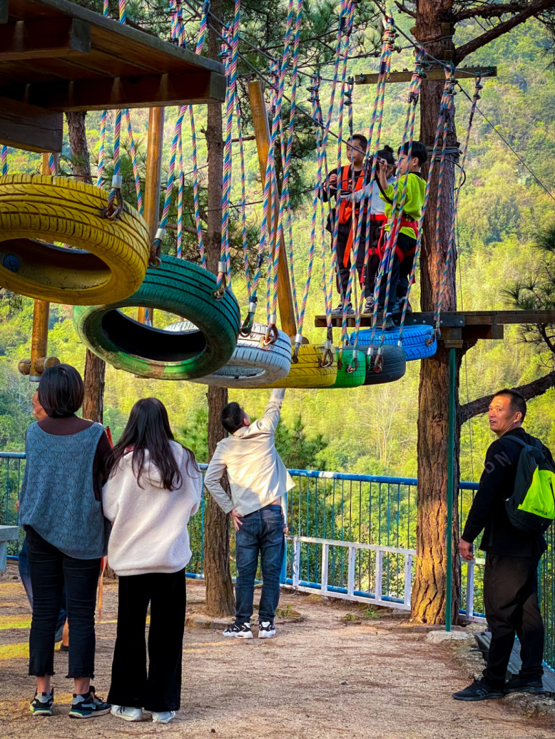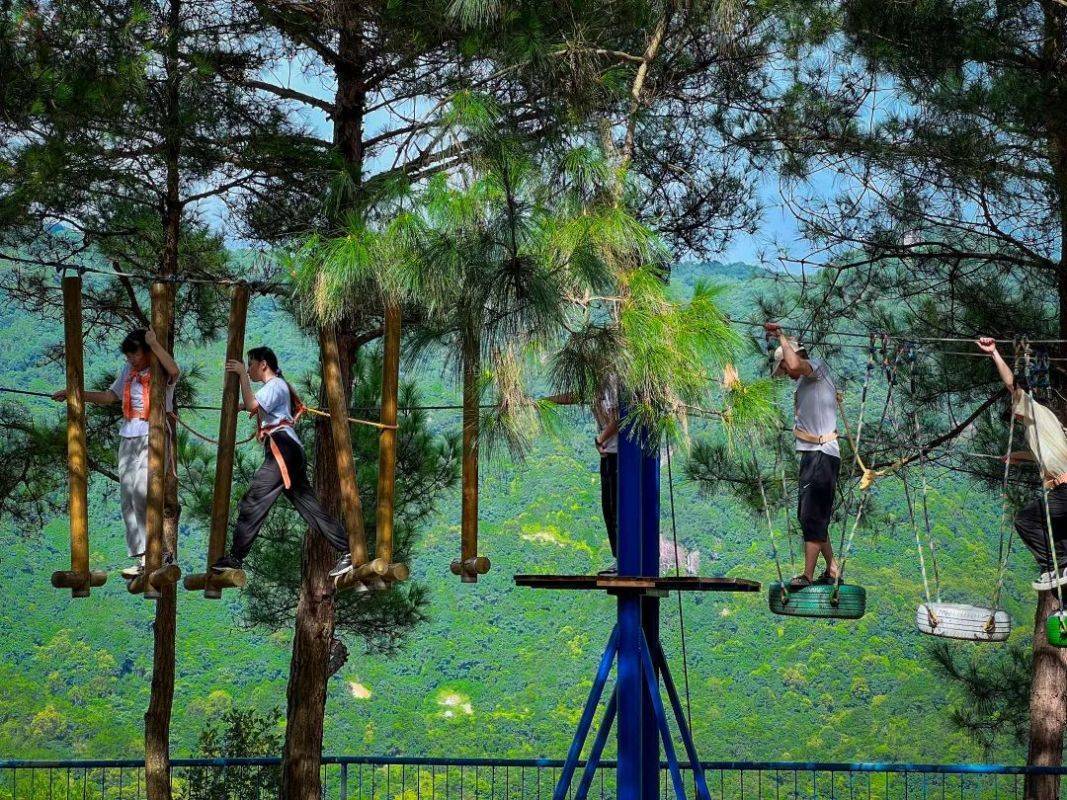 这里也是一个藏在森林里的游乐园,有高空滑索、步步惊心、激速滑漂、滑道、悬崖秋千、射箭等超多游乐项目,清凉、刺激,大人孩子都可以在这里找到乐趣。