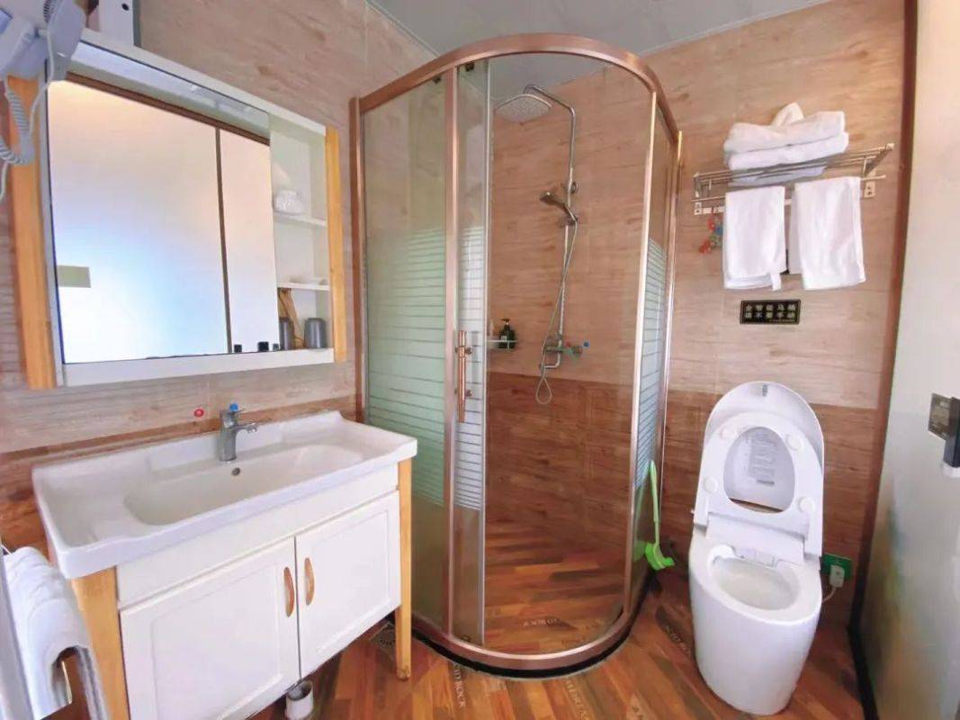 房间内配备全智能的马桶、窗帘,给你带来酒店五星级的享受,还有全自动摇椅等着你。卸下一天的疲惫,静静地躺在按摩椅上,感受从头部到脚尖的舒适。