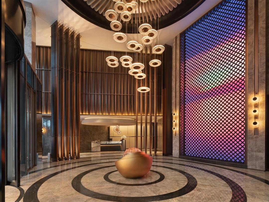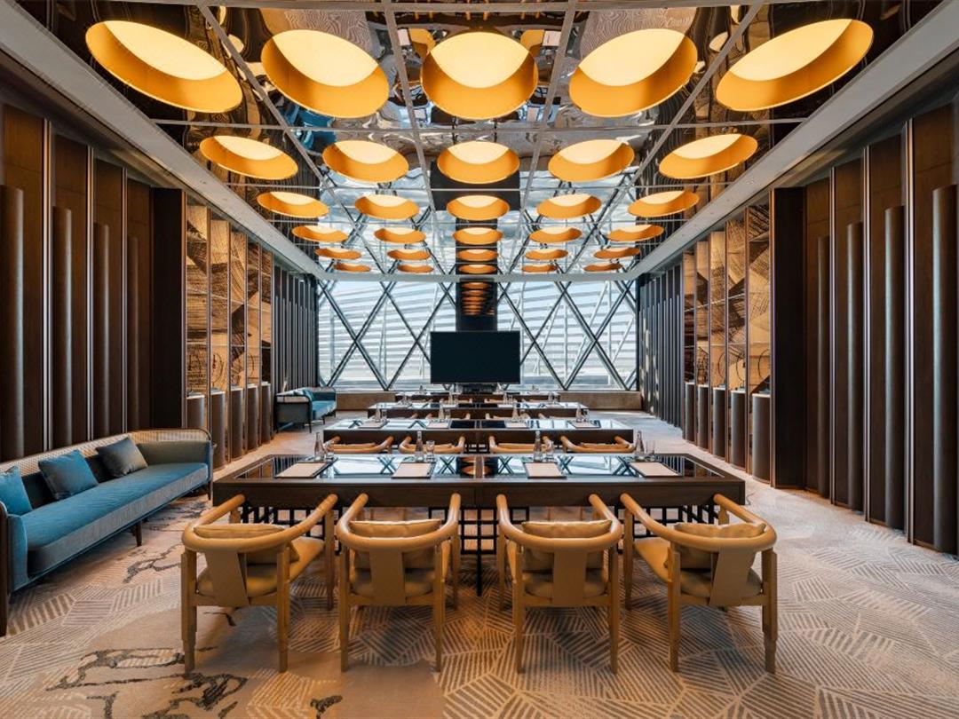 深谙中式美学的HBA,依循自"旭日东升,水绕新城"的设计理念,把南浔元素湖丝、湖笔、莲塘,艺术化融入酒店设计中,使得南浔希尔顿兼具中式水乡的古朴悠扬和新兴科技的未来感。