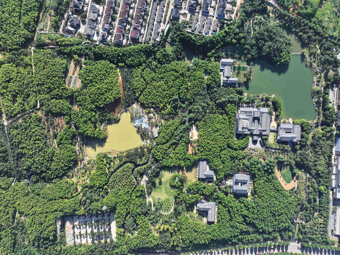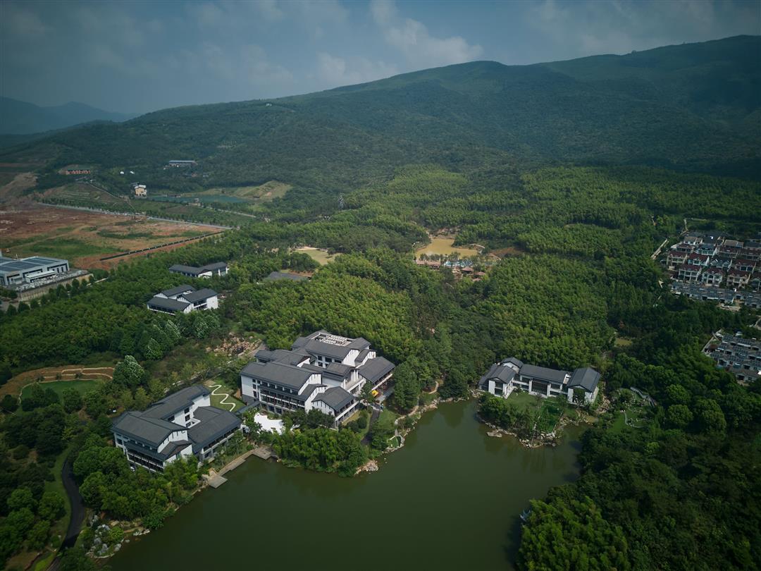 酒店坐落于长兴县煤山镇兴能路188号,背山面水,独居于五通山内。