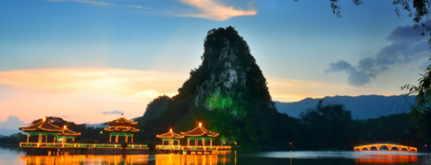 肇庆环星湖片区灯光璀璨、烟火升腾