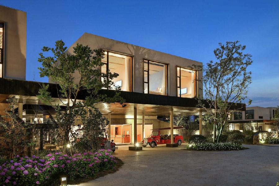 无锡阳山花间堂·桃花岛以“伴隐花间别墅群”为主题,为每个到访之人,提供私密的度假空间,以“曲径通幽”为设计灵感,将所有功能分区分布在9栋建筑内