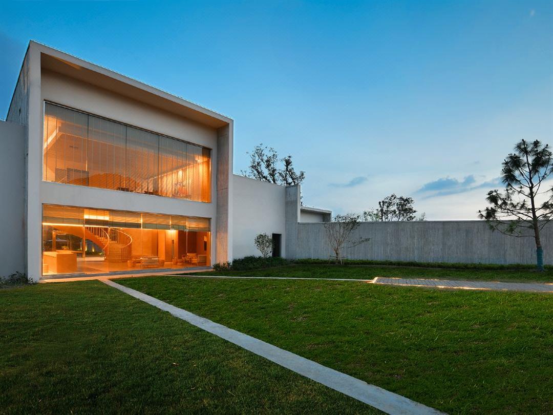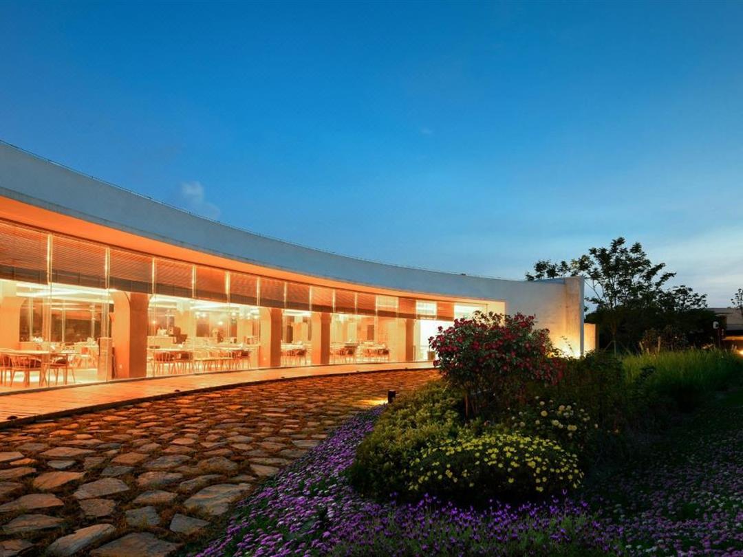 酒店选址在桃花岛,眼光实在独到。纯白色的主体建筑散落在这碧绿的桃花岛,背山倚水。若是桃花时节的桃花岛,仿佛私密的桃花源秘境。