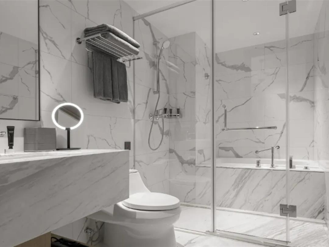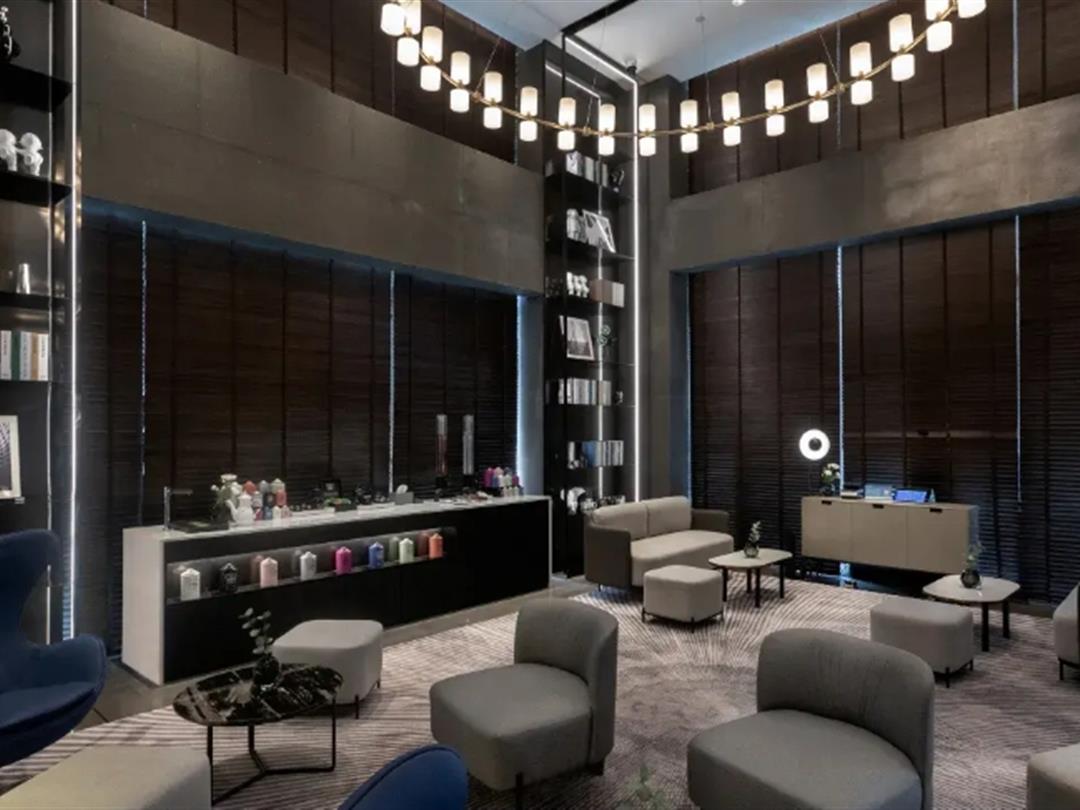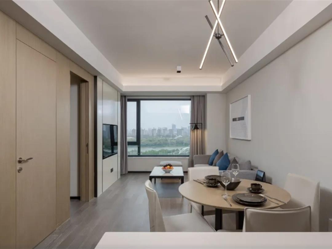 酒店室内设计,由深谙中式美学的HBA操刀。共有一居室、二居室以及三居室套房共253 间。设计风格简洁大方,舒适宜居。景观分江景或岛景。