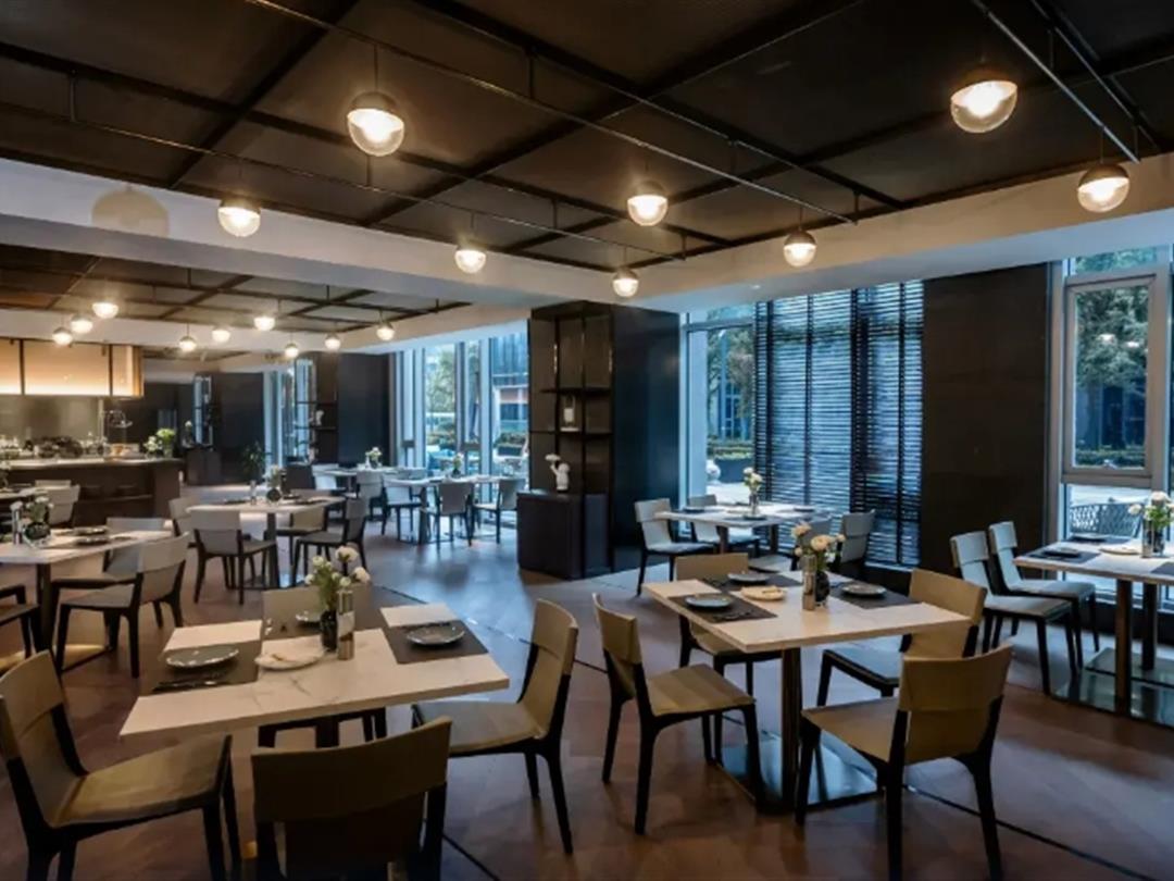 餐厅提供自助早餐,包含中西式及亚洲风味选择,营业时间覆盖周末延长至10:30。儿童游乐区为家庭客群提供专属活动空间。公共区域配备免费WiFi,提供免费私人停车位及24小时前台服务。智能化设施亮点突出,包括智能客房控制系统(一键调节设备)、小度智能助手(语音解决住店需求)及24小时智能机器人(贴身服务),提升便捷性。