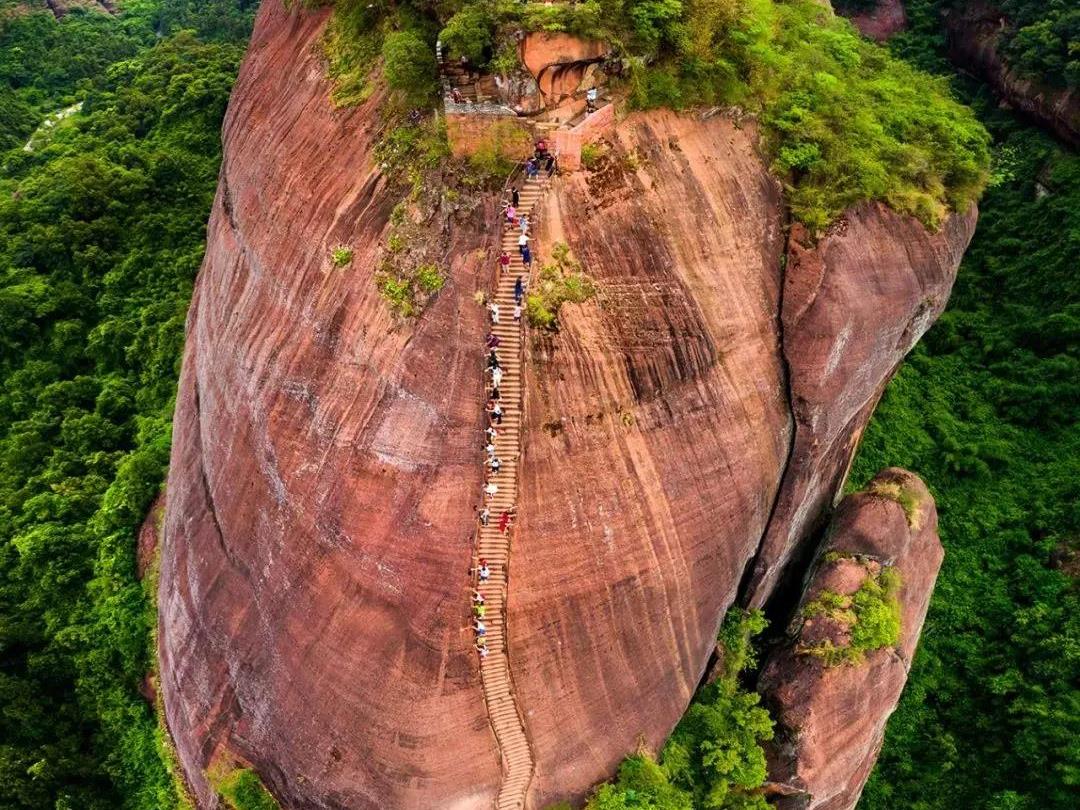 丹霞山景区集雄、奇、秀、险、古、广、幽于一身 、除了世界一绝的阴阳两石,还有双乳石、玉女峰、望夫石、人面石、蜡烛石、长老峰、姐妹峰、僧帽峰、观音送子岩……