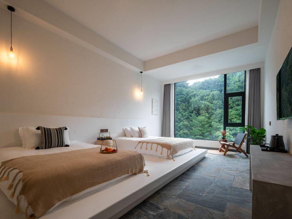 民宿共有29间/套客房。涵盖山景房、河景房、私汤房等多种房型。本次套餐入住微醺榻榻米大床房/雅致河景双床房。客房面积达40㎡,空间宽敞舒适。客房设计既现代简约,又带有精致的小巧思。