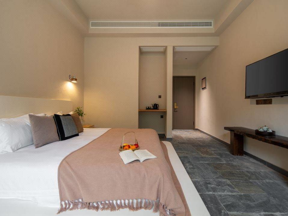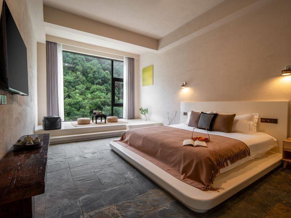 微醺榻榻米大床房自带景观榻榻米,一边品茗,一边是连绵的茶山、汩汩流淌的溪水,时光静静流淌,这便是度假所追求的悠然自得吧。