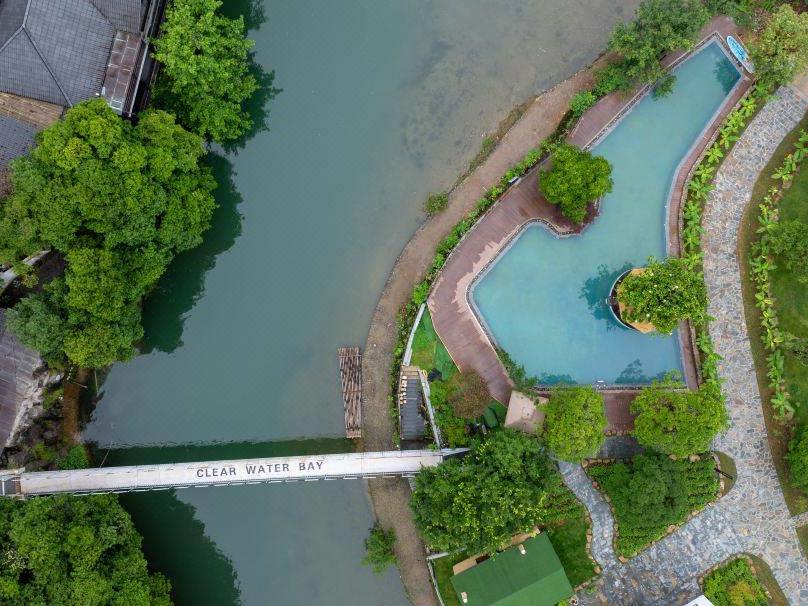 民宿坐落于杭州市桐庐县百江镇冯家,依山临水,茶山掩映。总用地近50亩,建筑面积超过5000平方米,开放式的景观庭院,种植着各种各样的植物,抬眼望去尽显绿意。