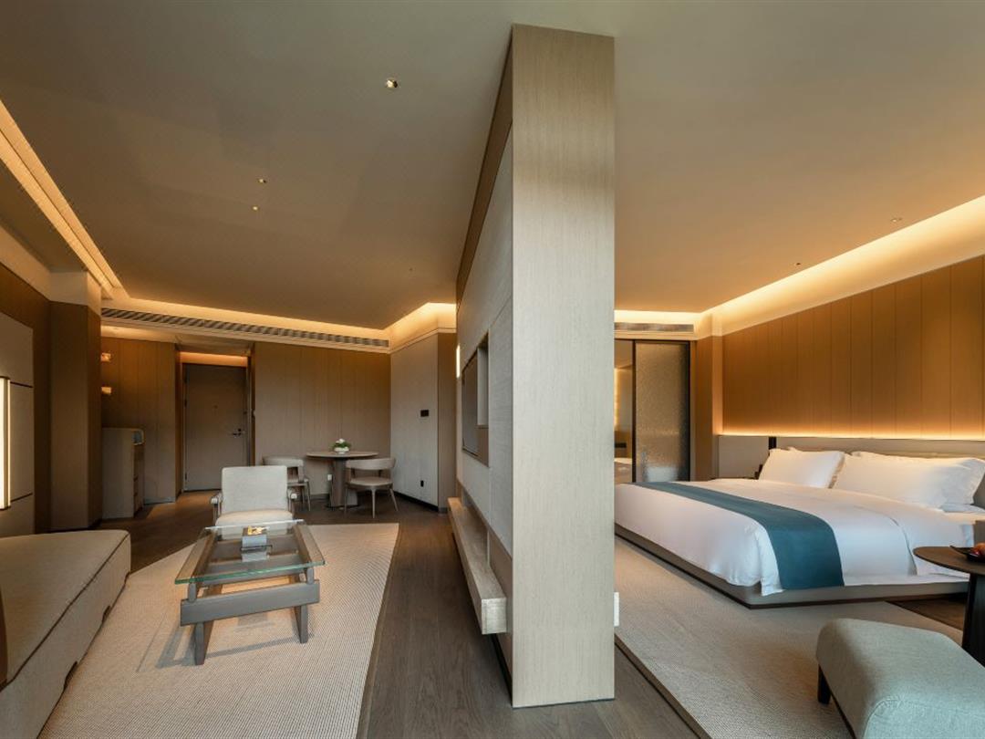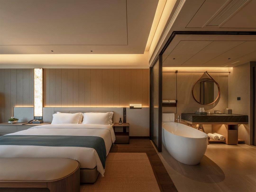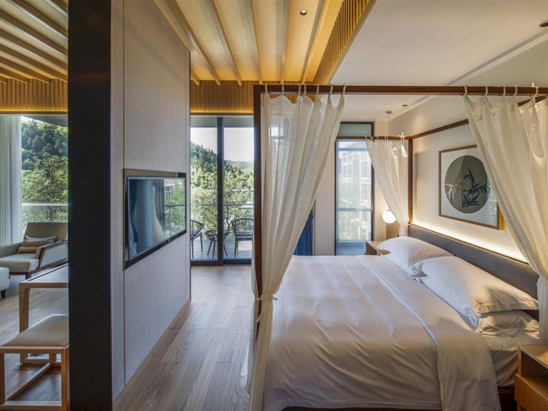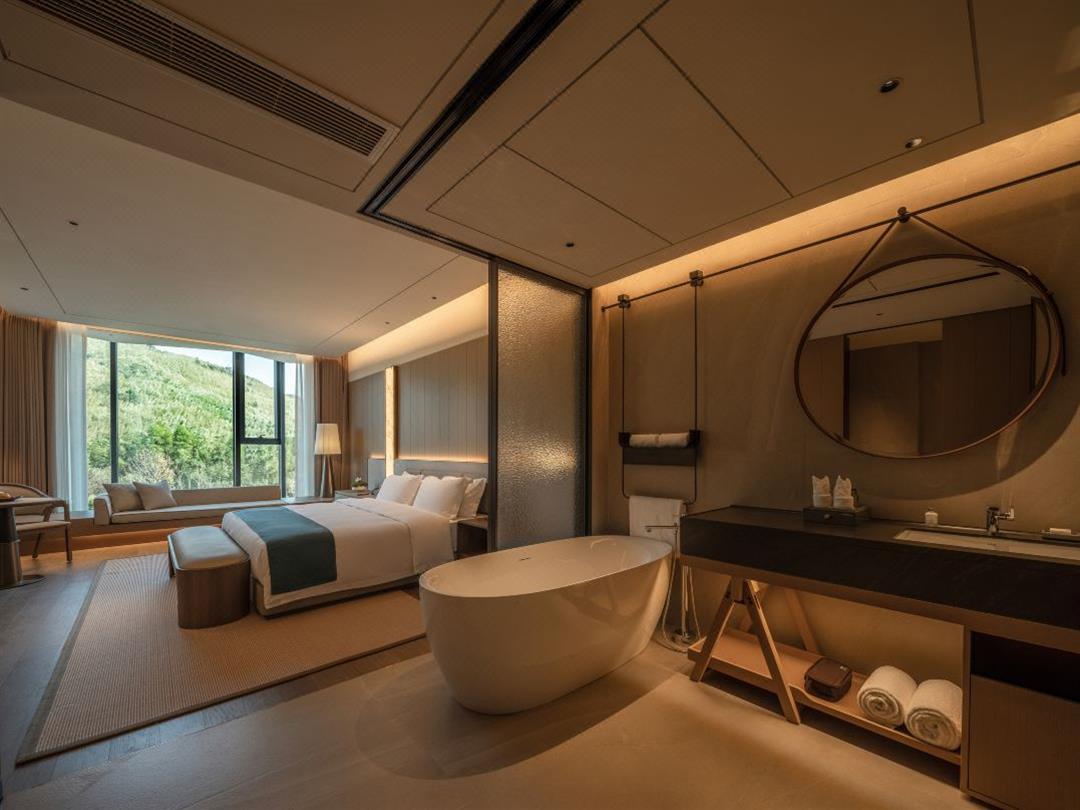 酒店房间类型丰富多样,拥有各类豪华套房、别墅套房103间(套),均自带将秀美群山引入室内的超大落地玻璃窗,每处细节呈现均以匠心呈现,尽显高级质感。