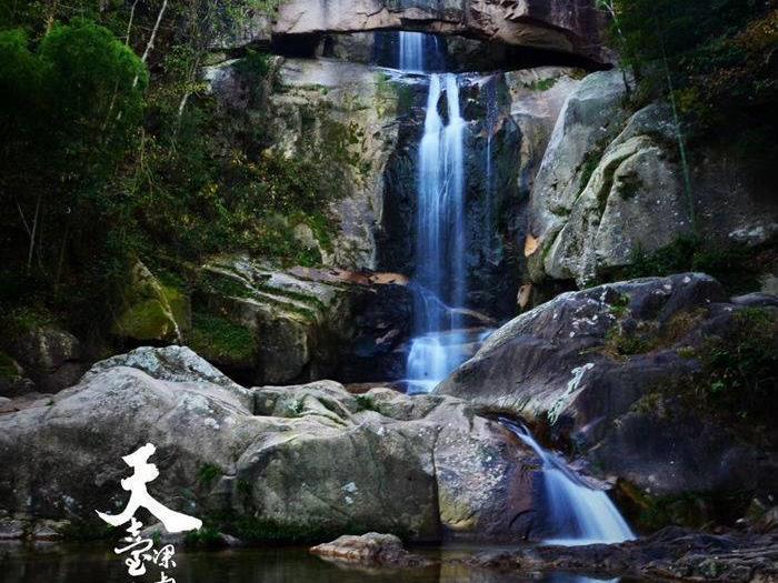 天台山是《徐霞客游记》开篇地,徐霞客在其游记里写道:“仰视石梁飞瀑,忽在天际;观石梁卧虹,飞瀑喷雪;梁阔尺余,长三丈,架两山坳间。余从梁上行,下瞰深潭,毛骨俱悚。”
