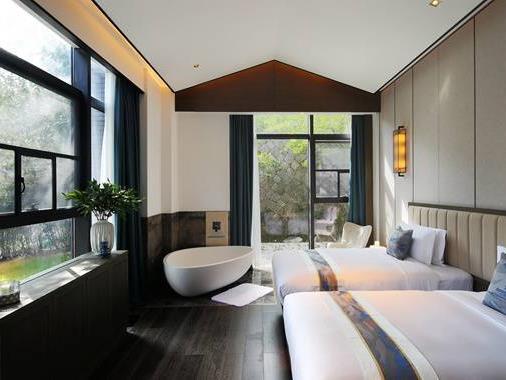 酒店每间房55平起,客房空间极度,以树景、花景、庭院景为主,落地窗外的景色一览无遗,一切都显得自然、清净、整洁。