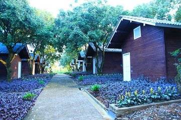 梦想街设有34栋木屋小别墅,构造的雅致小木屋隐匿于花间树林。