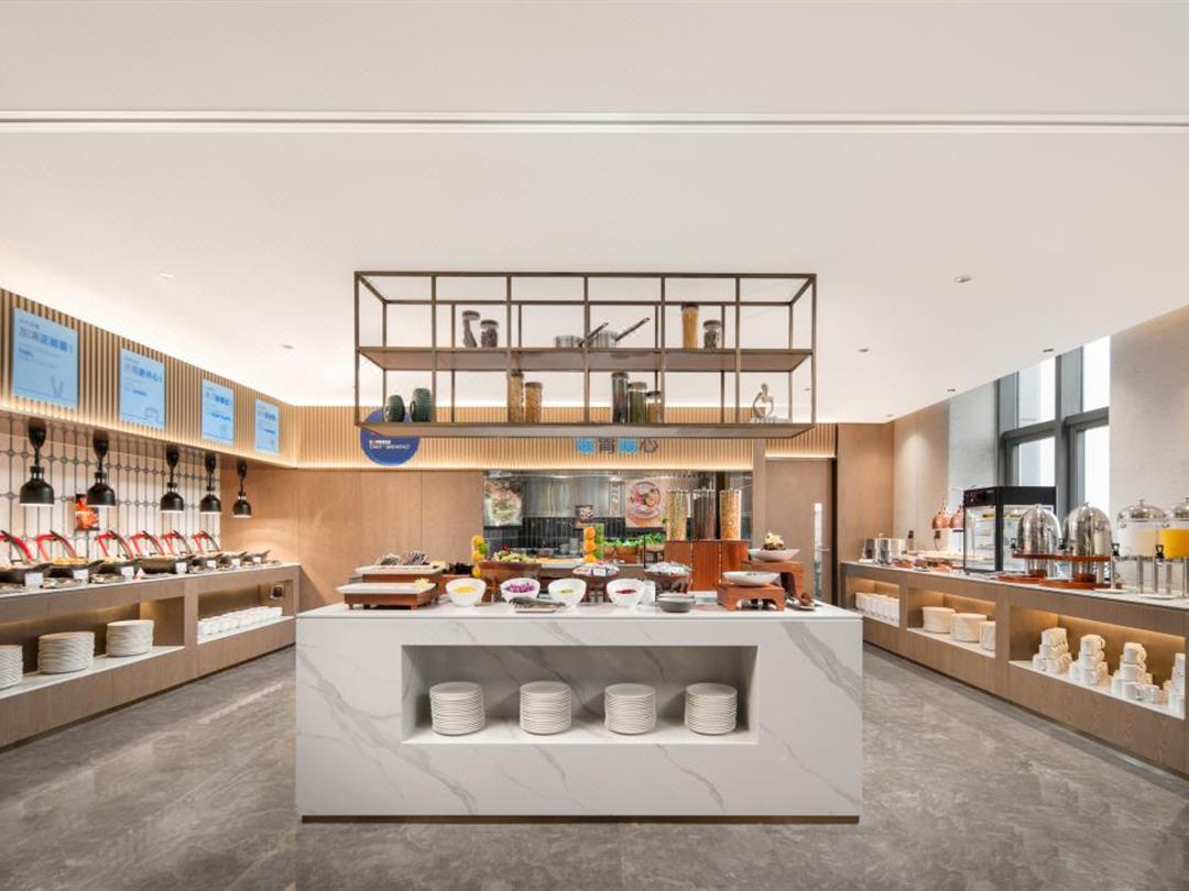 餐厅的装修风格延续了酒店整体的简约时尚,木质桌椅搭配柔和的灯光,营造出舒适惬意的用餐环境。