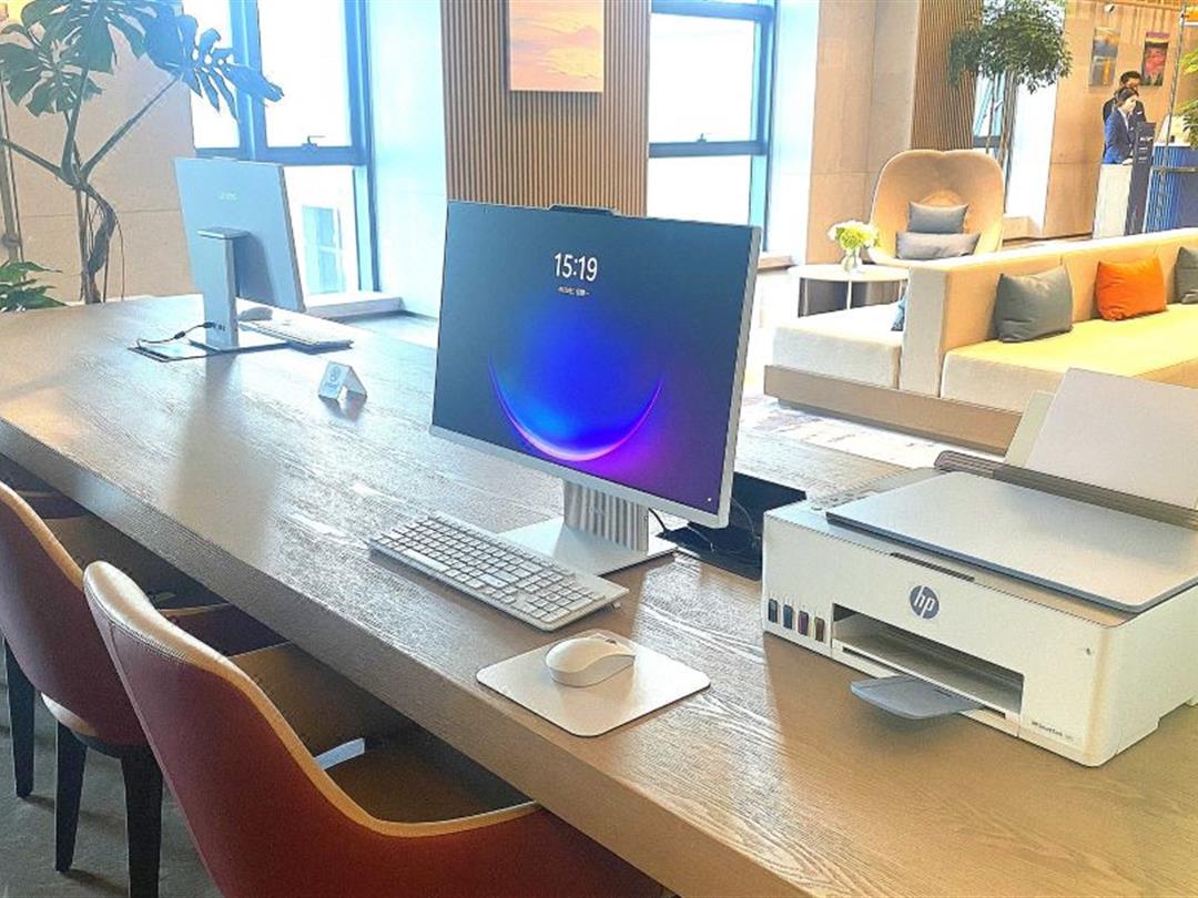 酒店公区打造了融合工作、休闲与餐饮的共享 “智・空间”。这里配备了几台电脑,方便客人随时查阅资料、处理紧急工作事务。同时,书架上摆放着各类书籍和杂志,涵盖了旅游、文化、商业等多个领域,满足不同客人的阅读需求。