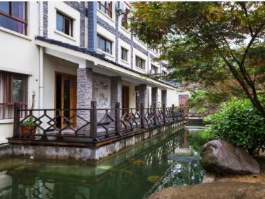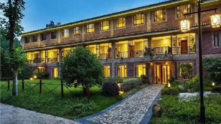 现代欧式建筑风格与全景木平台在碧水青山环绕之中,内砖红色楼体外观与当年知青亲手种下、郁郁葱葱的香樟形成鲜明的对比,尽显清幽,敛且精致,让您进则沉浸于山水自然,退则尽享舒适。
