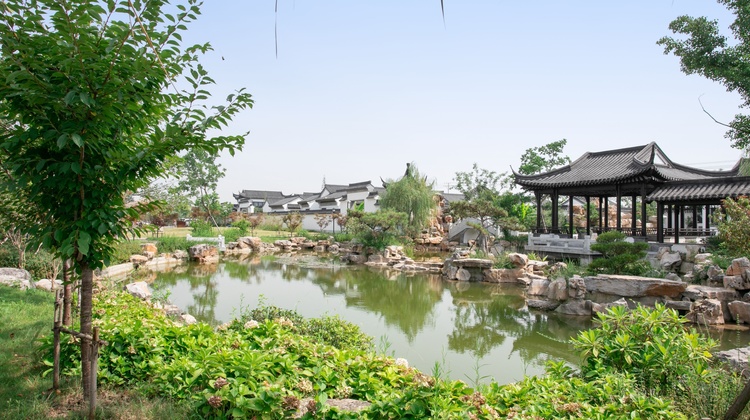酒店的建筑是经典的徽派风格,粉墙黛瓦、飞檐翘角,简朴中透着典雅。园林设计更是融入了扬州各大名园的精华,移步异景,匠心独运。无论是小巧精致的亭台楼阁,还是碧波荡漾的池塘,都让人仿佛置身于一幅水墨画中。