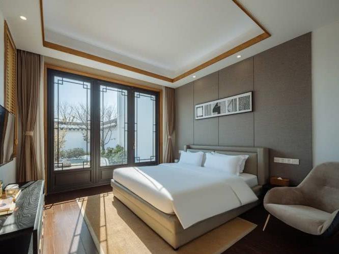 民宿,目前共有4栋独栋中式庭院别墅,包含14间豪华大床房。新中式的装修风格,设计灵感引用夏至园景,环境雅致,仿佛置身古典园林之中。给客人提供了一个归隐乡村,远离城市喧嚣的生活场景。