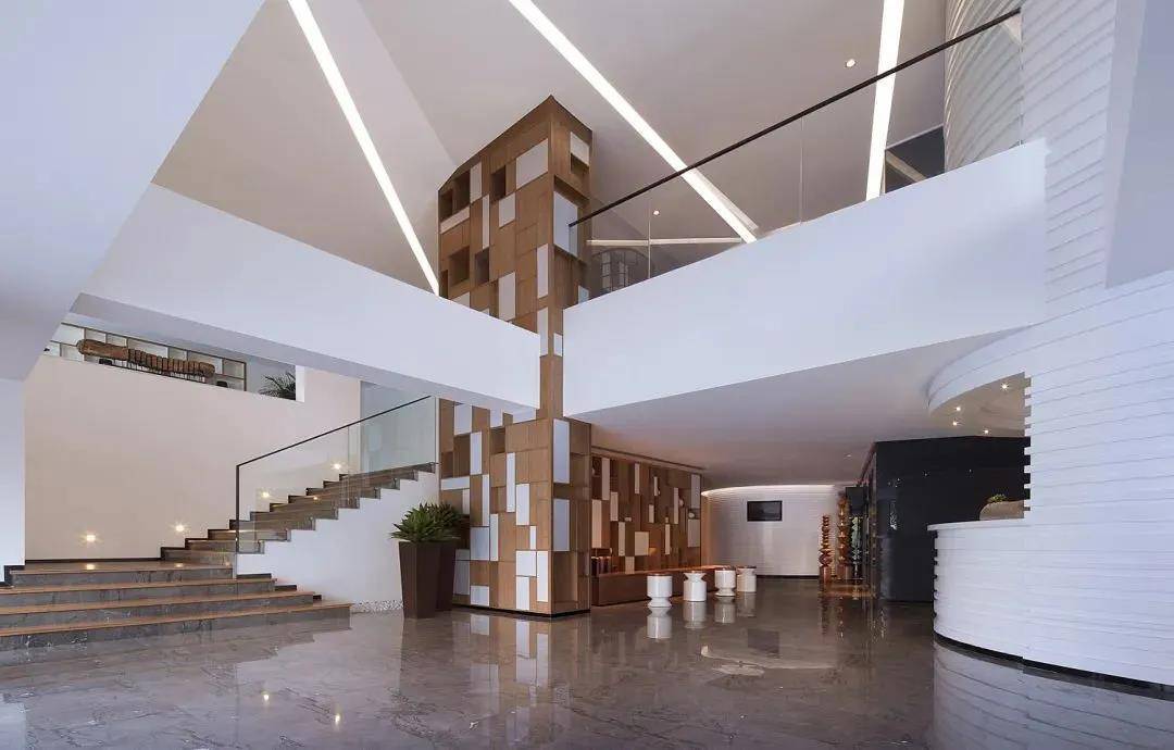 酒店大堂 Lobby由著名的建筑师设计,采用白色为主基色,配以高档的桃木色相结合,巧妙运用了点、线、面的搭配,使整个大堂显得时尚、简洁、高雅、轻松,完美的演绎了高端海滨度假酒店的特点。