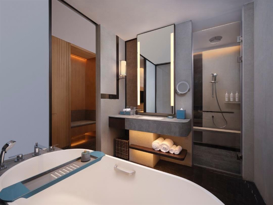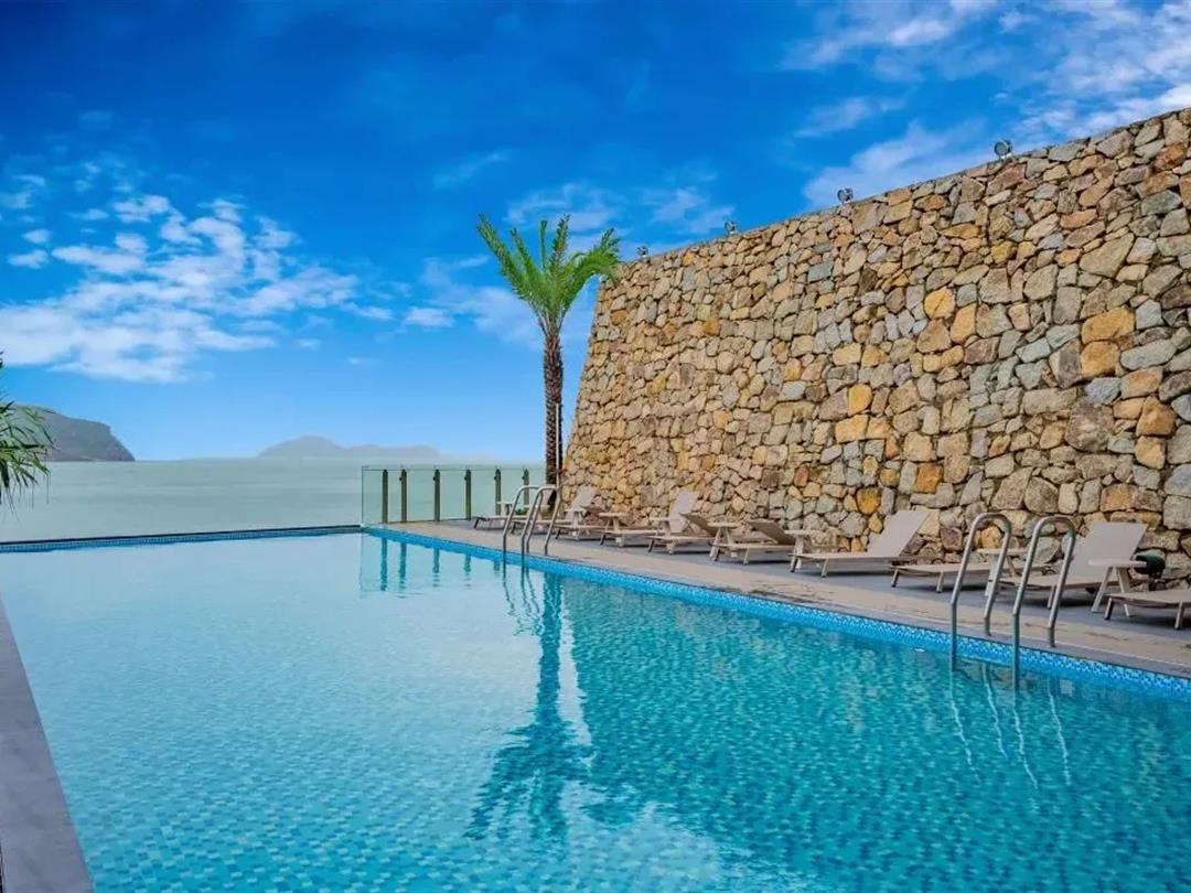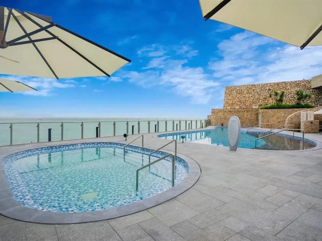 休闲设施包含:户外临海无边际泳池(俯瞰海景)、室内外双泳池、24小时健身中心(满足全天候锻炼需求)、儿童俱乐部(亲子专属活动空间)及私人水疗中心(焕活身心)。