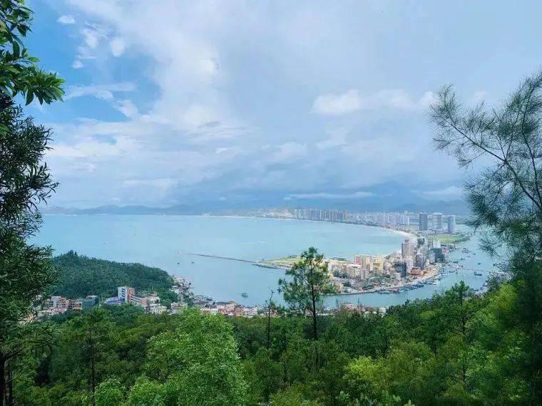 双月湾观景台登高而望,可同时看到两轮背对的海湾