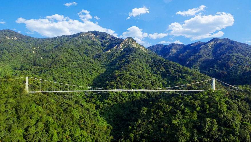 跨过潺潺而过的山涧和激荡而出的瀑布