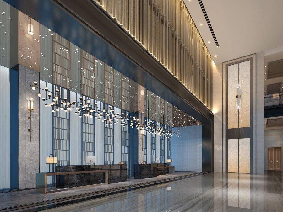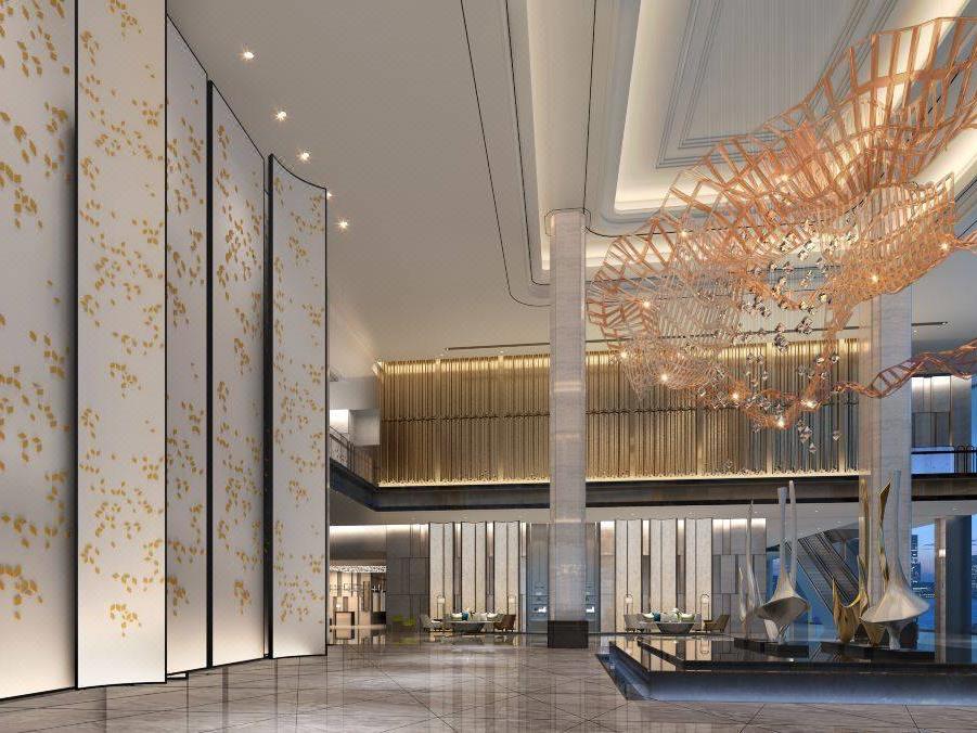 步入酒店大堂,黄蓝的明亮色彩渲染出了时髦的氛围,璀璨的水晶球吊灯、抽象且富有美感的墙面,尽显高档典雅之美~
