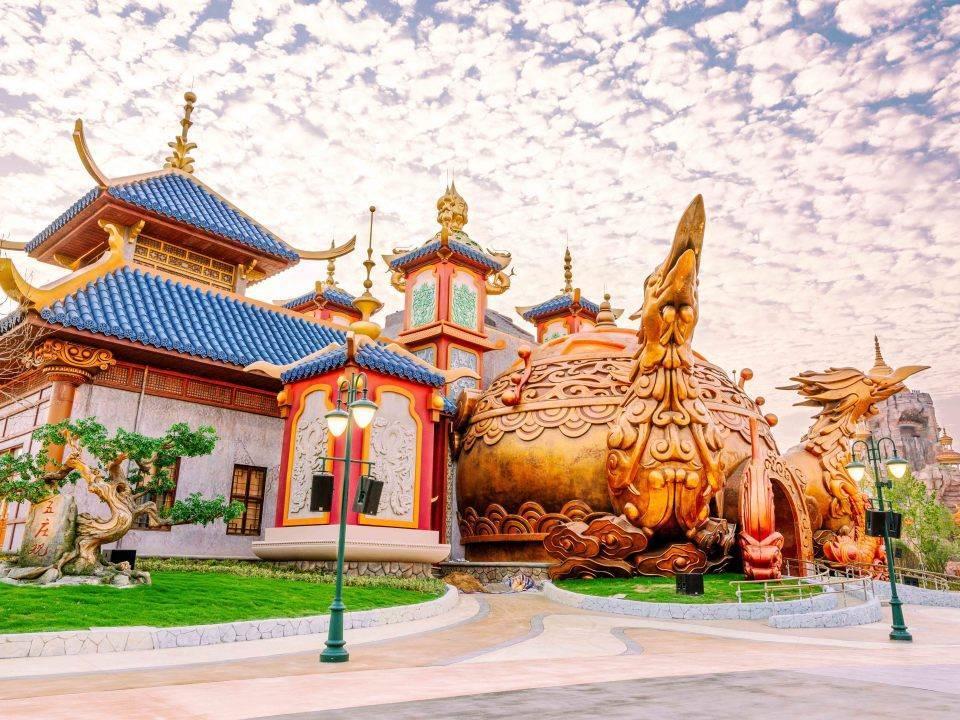 西游乐园总占地560亩,建筑面积6.6万平方米,分为9个区,分别对应《西游记》里的四大部洲、师徒四人和作者吴承恩。