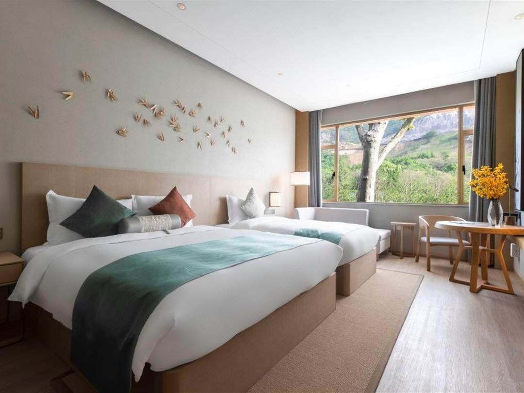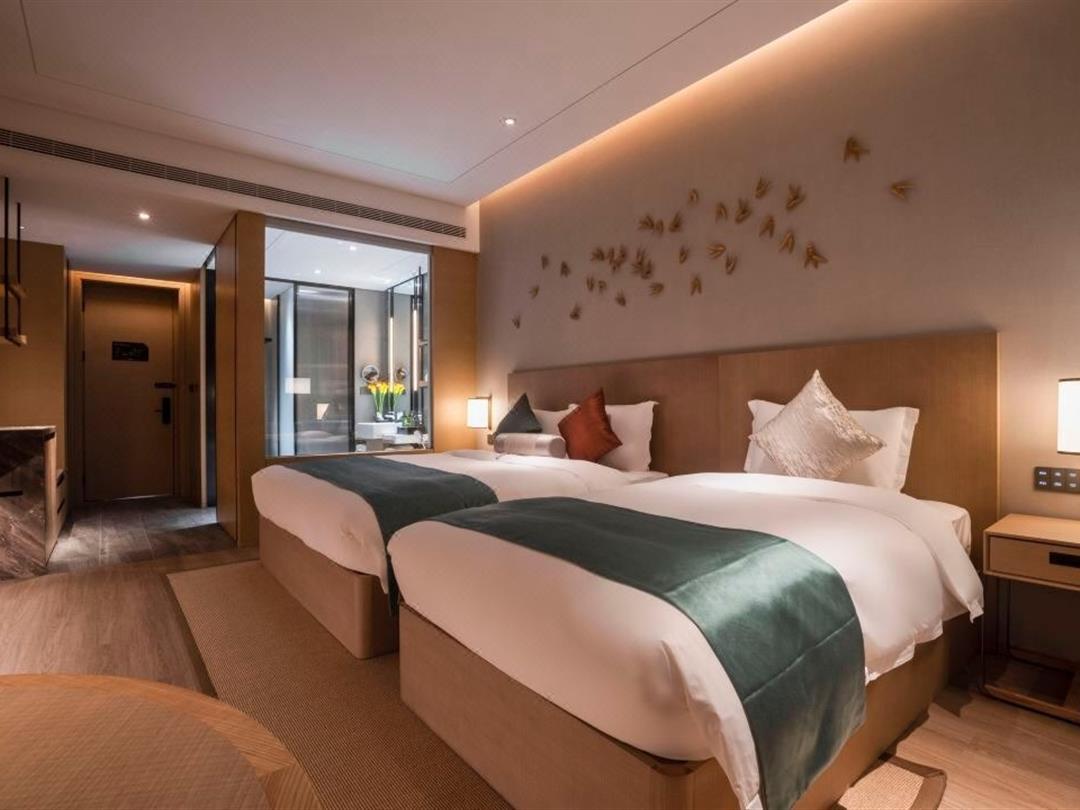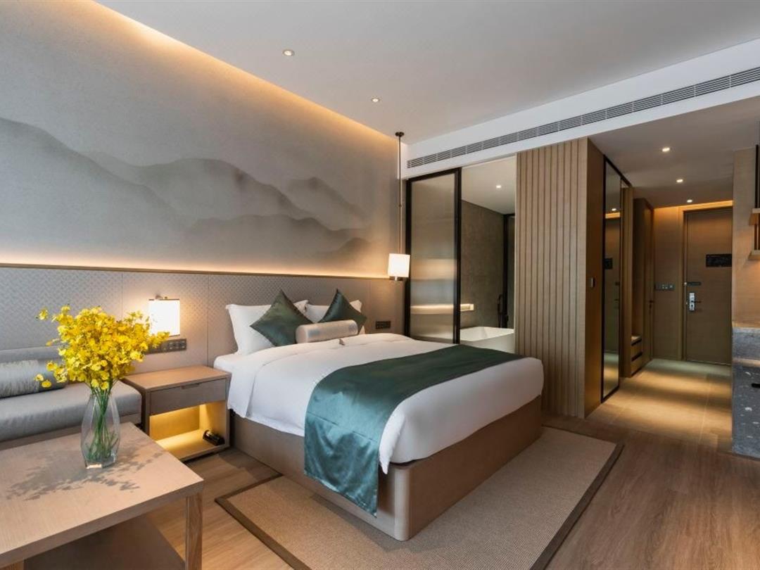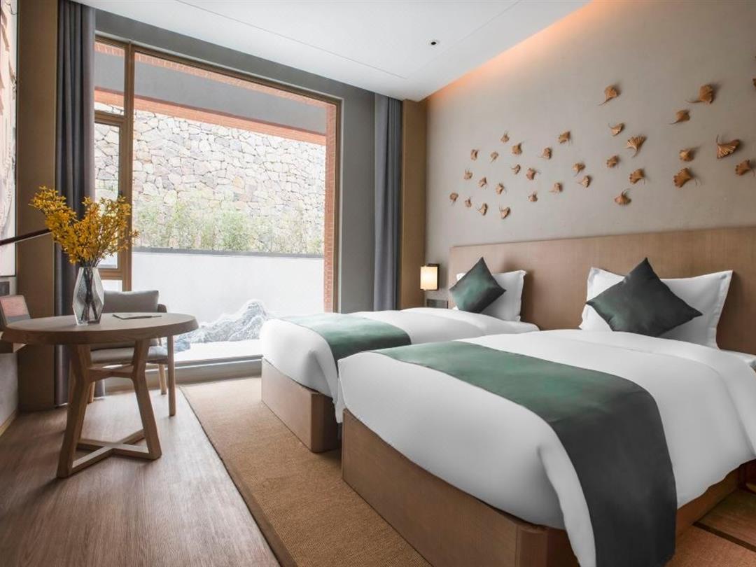 酒店的客房共有52间,客房装饰轻快简明、轻奢雅致、别具一格。宽敞的落地窗、推窗见景。葱郁的园林、园博园尽收眼底。本次入住的是精品标间。