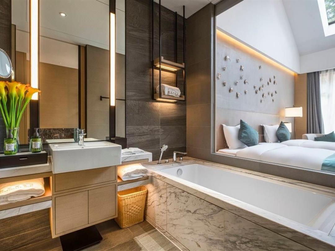 若是说酒店外部是复古怀旧的质感,那么客房内部的科技能让您耳目一新。创新的自助式入住办理、前卫的人脸识别客房门、高端的全智能家电充满整个房间。