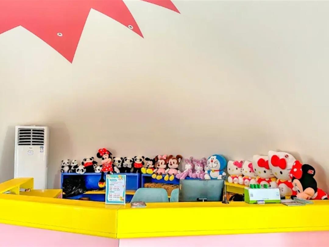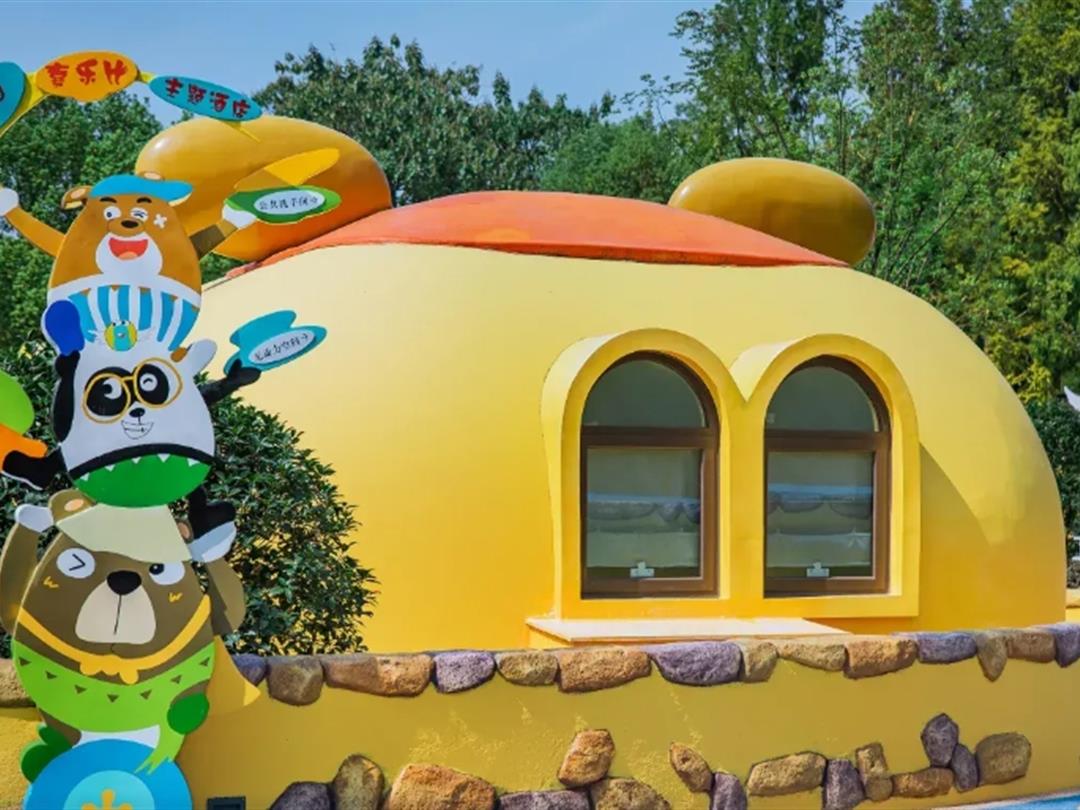 32间童话小屋,3种经典房型,11种不同卡通外观造型的萌宝房。