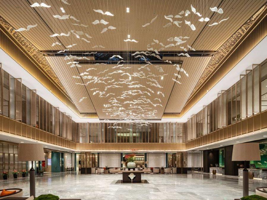 酒店外观建筑壮观豪华,内部设计也十分大气,更是融合绍兴本地元素的江南文化、新中式、宋代美学,将“豪华大气,诗意之美”展现的淋漓尽致。