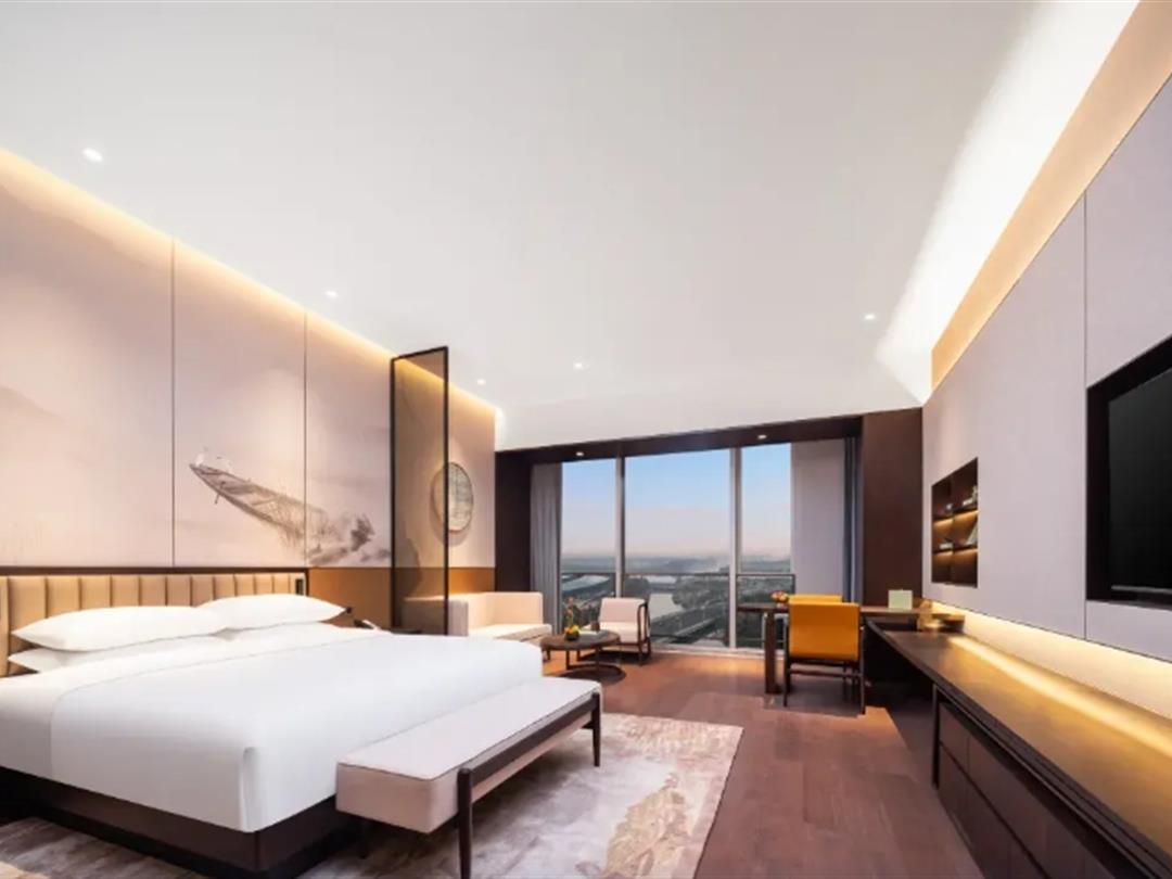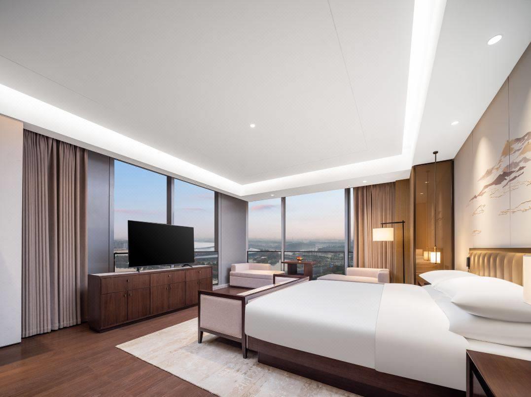 酒店的客房设计,精妙地融入了南宋水乡和历史名城元素,搭配高品质灯光、丝绸床品和茶具,呈现出浓浓的江南韵味与风情。