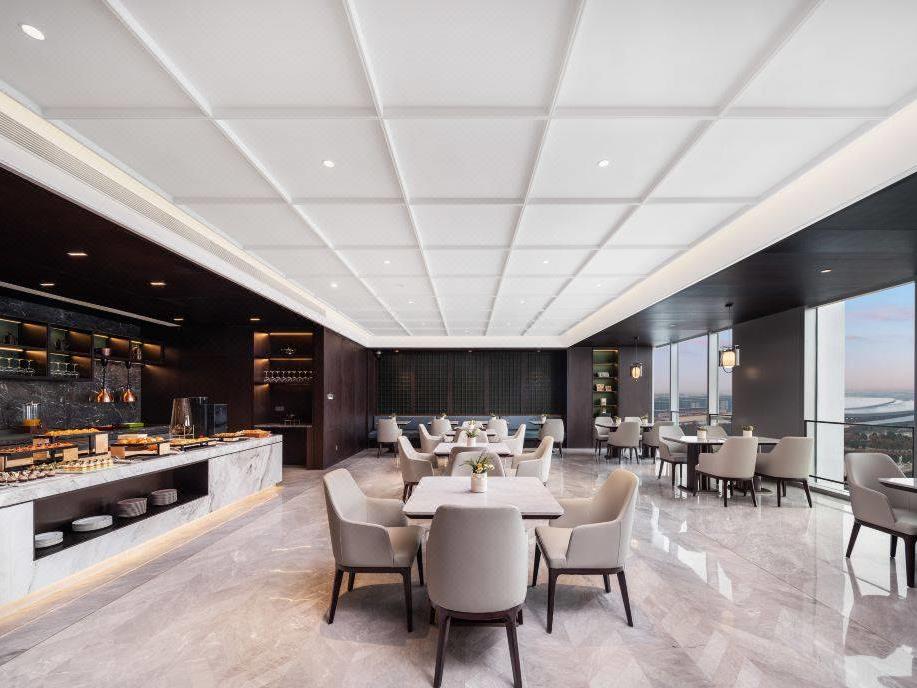 每日自助早餐在春晓咖啡厅享用,其设计灵感来源于绍兴的江南水乡的茶馆,明镜通透,让宾客在享用美食的同时 ,也能体验到水乡的宁静与雅致。