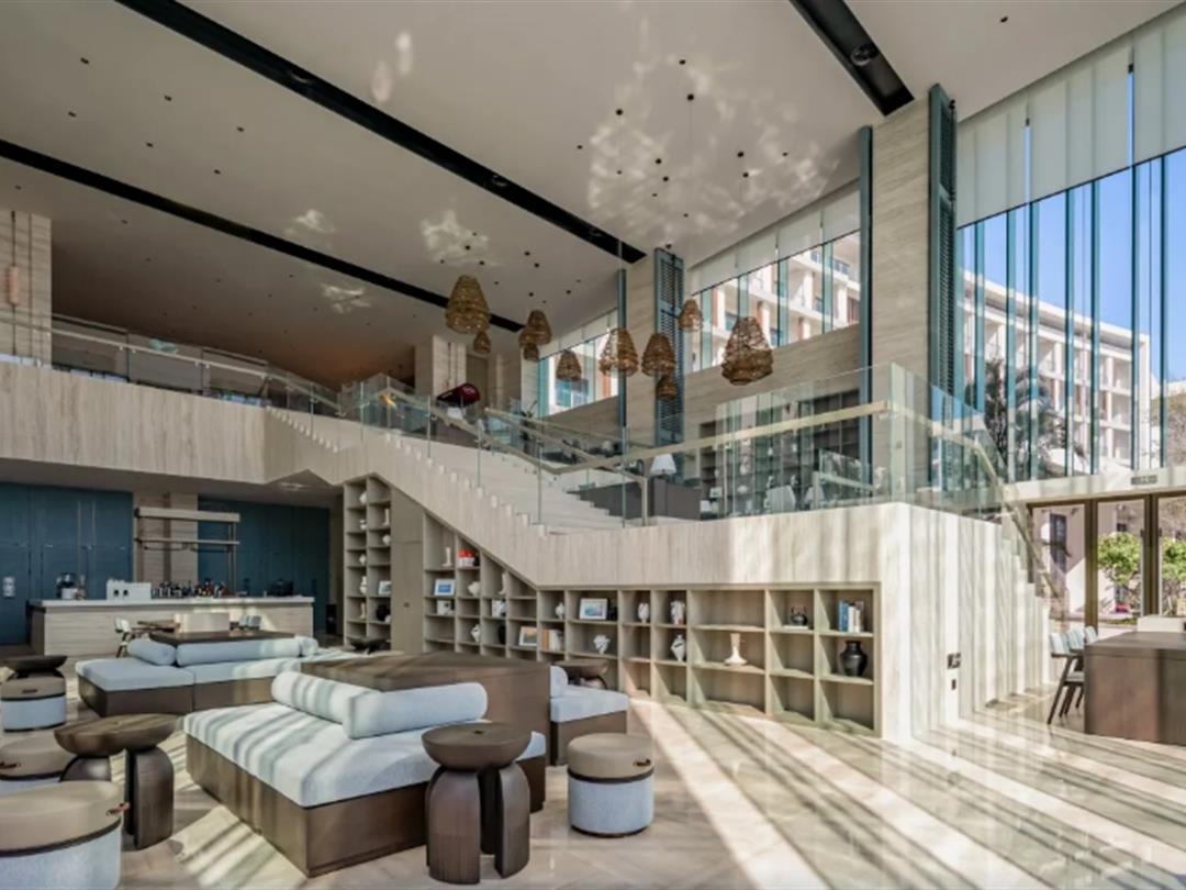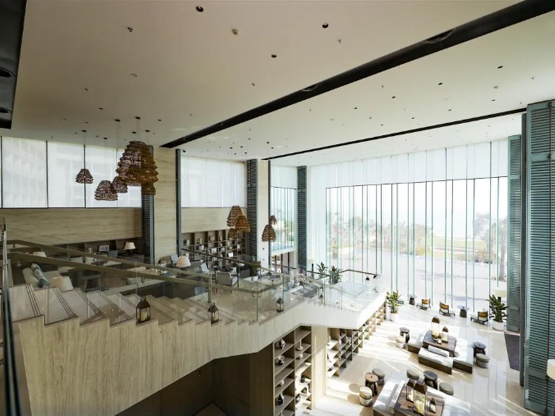 大堂吧悦堂吧,从酒店一楼延伸至3楼,挑高9米,一览无余的全海景落地窗,让你可以一边享受特色的茶饮、甜点,一边眺望海天美景。