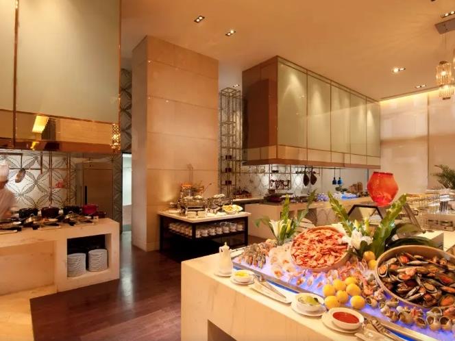 餐饮方面,设有开放式厨房的全日制美食汇西餐厅,以及主打贵州酸汤菜肴(如酸汤牛腩、酸汤鱼)的品珍中餐厅,融合鲁菜、粤菜及本地风味。