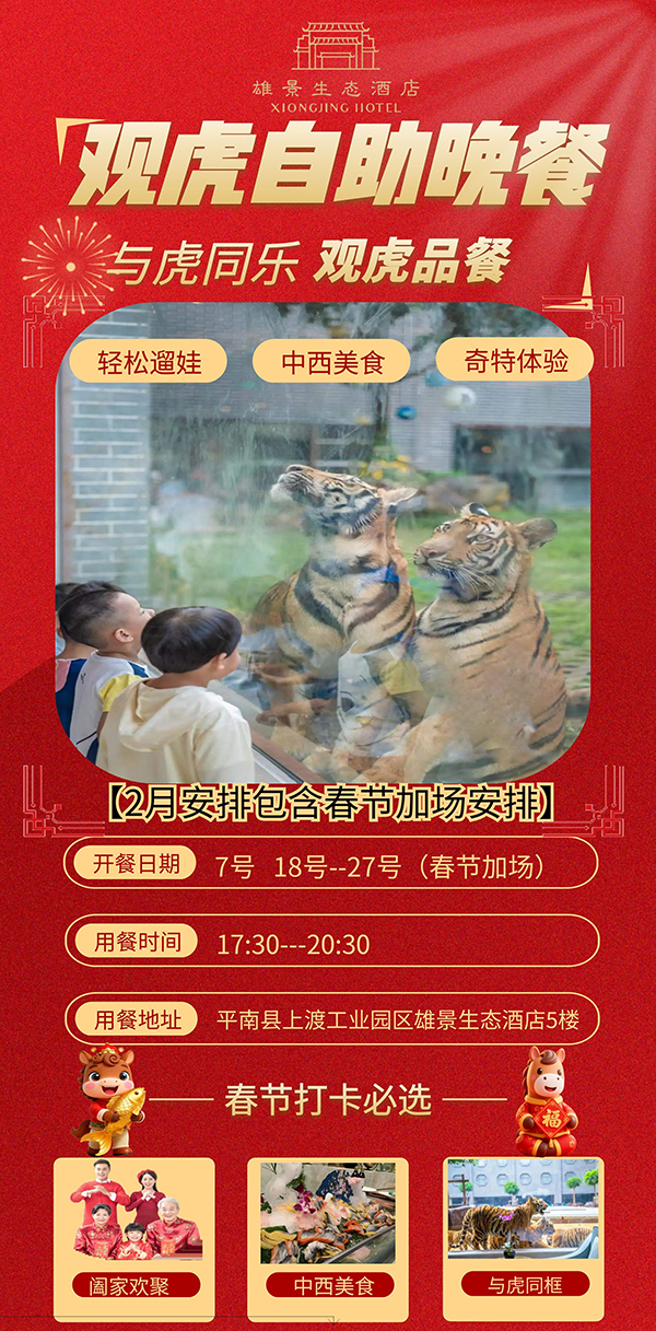 - (2)在5楼观虎自助餐厅:门市价168元/位,现场购票优惠成人128元/位,1--1.4米儿童60元/位;成人票可携带1名1米以下免票儿童