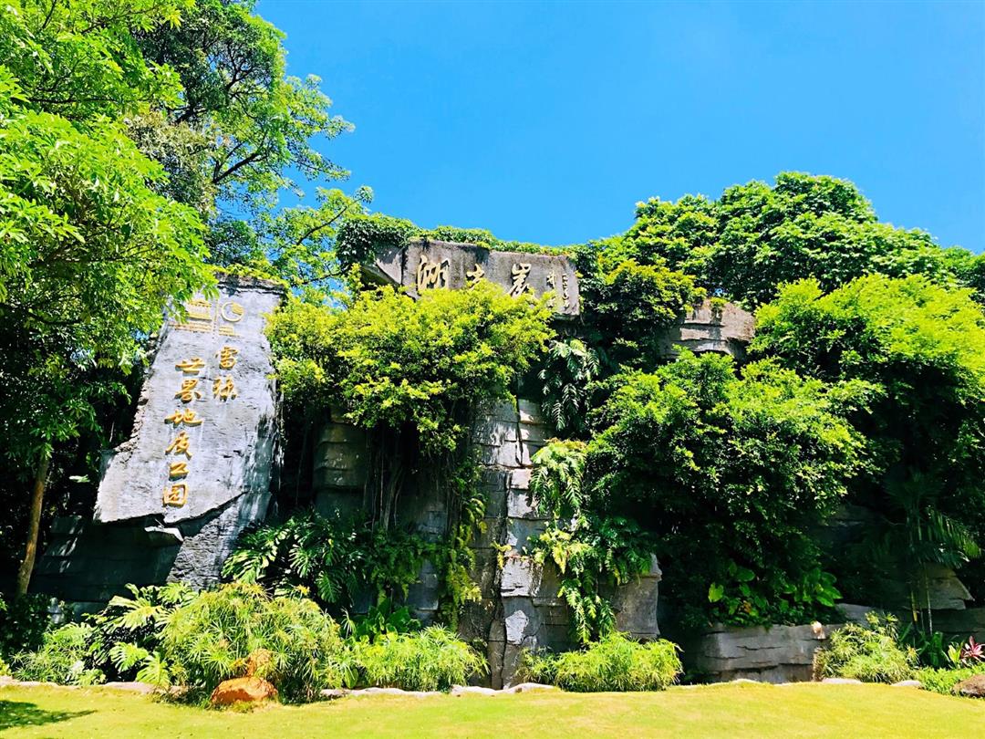 湖光岩风景区位于湛江市区西南部约19公里处,是的湖光岩火山口风景区。湖光岩大约形成于20万年前,是我国现存的三座火山湖之一,也是世界上除德国的Manderscheid之外仅有的玛珥湖。这里的地质特征兼有海岸地貌、构造地质地貌等多种地质遗迹,自然风光极好。湖光岩为中国玛珥湖的典型代表,湖底的沉积物真实的记录了十多万年以来古气候、古环境的变化情况,蕴藏着丰富的热带亚热带气候环境的变化的信息,被专家们誉为“天然环境变迁年鉴”。湖光岩为火山垣环抱,湖水清澈如镜,湖四周悬崖陡壁,火山岩层理、韵律清楚。公园内古树难天,古藤缭绕,植被茂盛,有一片高密度空气负离子区,堪称“天然氧气吧”,人在湖滨漫步,倍感心旷神怡。园区历史悠久,早在隋朝时期,佛教僧人就依岩而建楞严寺、白衣庵等古刹,宋朝丞相李纲题写的摩崖石刻“湖光岩”存留至今。关于玛珥湖:玛珥湖是一种极其稀有的火山湖,是由火山爆发冷却后,陆地上下沉的积水形成所致。湖水因为来自于地下水的渗透,具有天然的自我净化功能,所以无论旱涝都永远不会干涸。