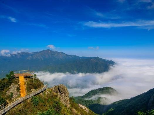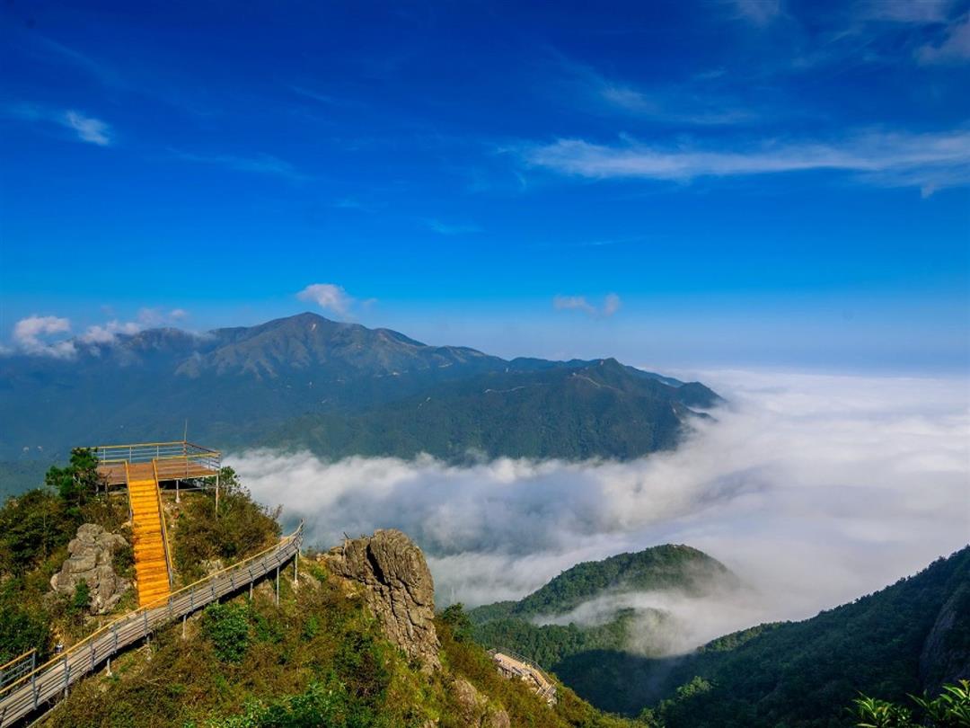 金子山海拔约1417米,有着“岭南险峰之称”,登顶需要约2.5-3小时,下山需要约1.5小时。沿途郁郁葱葱,奇峰怪石不断,更有古树溪谷、竹海奇观可供观赏。悬在千米之上的玻璃栈道既惊险刺激,又能给游人带来满满的征服感。
