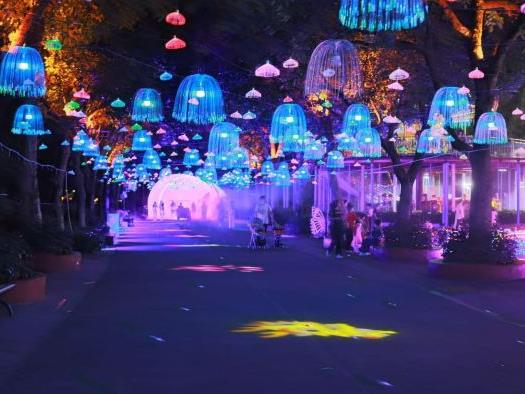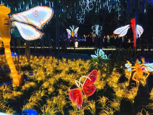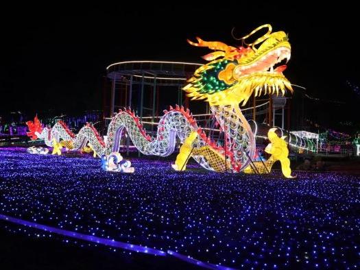 梦幻灯光夜景与热气球俯瞰农耕风光,夜间游玩亮点突出