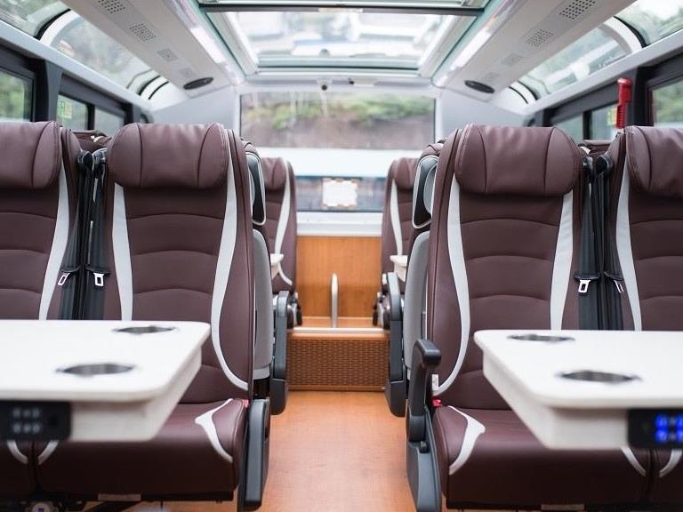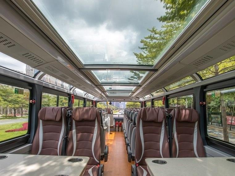 旅游观光巴士的车身为红色,又称“红胖子”;车内几乎可实现360度观景,并引入全息沉浸式投影技术,搭载360度全景摄像、5G+VR等科技设备,每个座位上都有耳机接口,可为乘客提供中英日法等8种语言播报及沿途景观介绍。