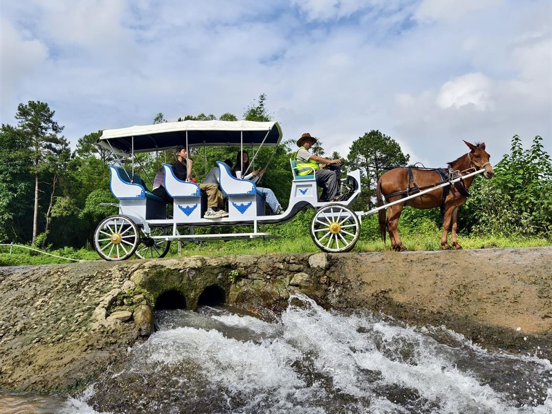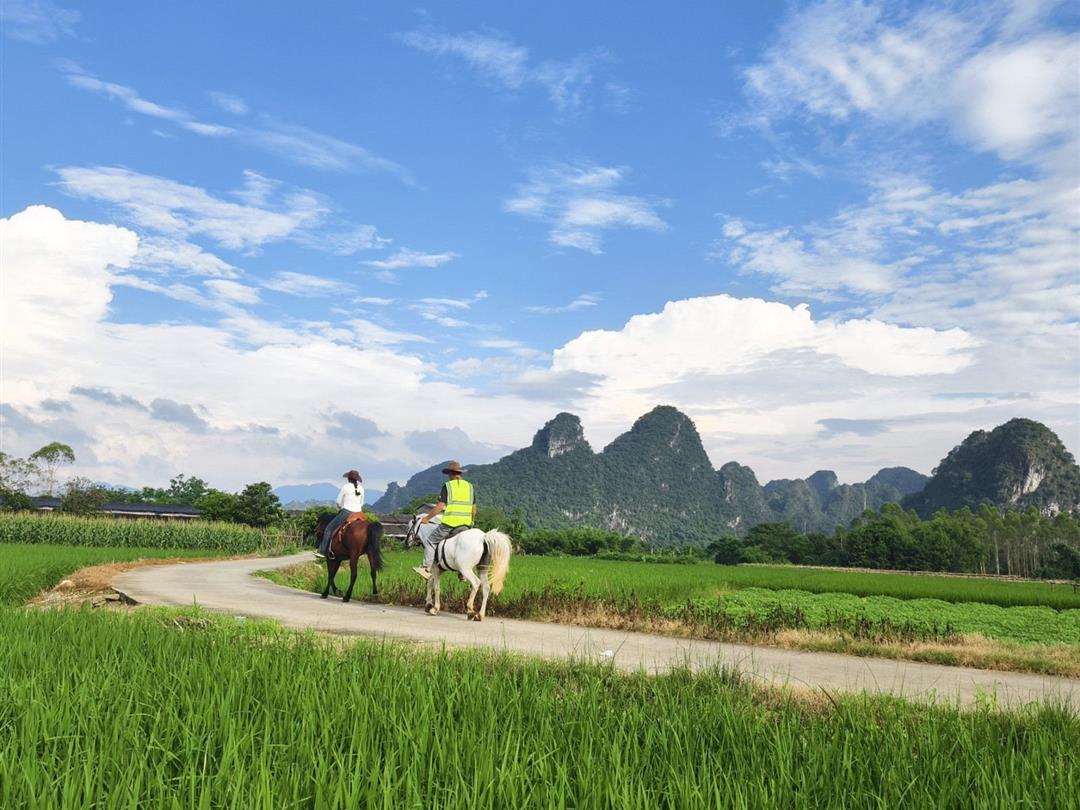 英西峰林·茶马驿道是英德康嘉旅游开发有限公司旗下特色休闲娱乐项目,线路围绕英西峰林特色地形地貌,结合户外运动,以马车观光、骑马体验、峰林野骑模式带你深度畅游英西峰林走廊。沿途景色奇特,山势雄伟,大小溪涧、河流穿绕其间,千姿百态的山峰、神秘莫测的岩洞、嶙峋怪异的岩石、变化无穷的云海、雾景、竹林、农舍星罗棋布点缀其间,浓郁乡土气息的田园风光,置身其间,大有蓝天、白云、青山、碧水回归大自然的神韵。并途经众多特色网红打卡点,风光绮丽,景致醉人,让人目不暇接,流连忘返。