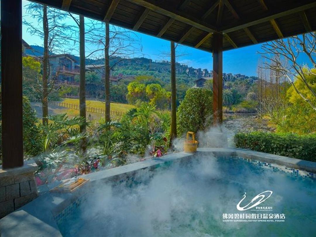 佛冈碧桂园凤凰湾温泉是大型的综合园林式露天温泉,总占地达2300多平方米,温泉水取自于地下1200多米,出水温度42度。