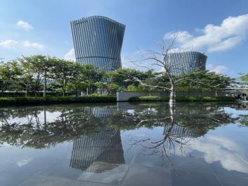HEM的建筑设计把对立的特征融合起来,形成了由简单的圆形和方形构成的建筑形体。作为中心的圆形,其重心和尺度伴随着高度发生偏移,产生了由内到外,由建筑到城市,缓缓扩散的效果。这是中原古建筑“天圆地方”的传承,也是象征性纯几何学立体的交错而创造出具有岭南建筑文化特征、呈现光影礼赞的建筑风景。