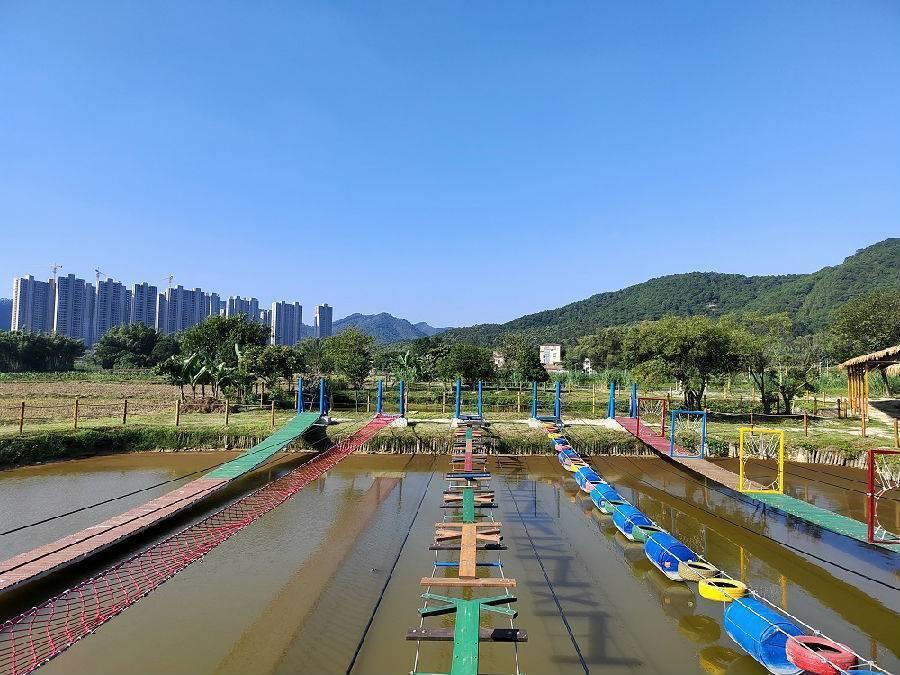 佛山花田喜事农耕创意园位于佛山市高明区明城镇,是结合乡村农耕、休闲玩乐、旅游观光于一体的农旅田园综合体。园区囊括有农耕农业科普园地、水陆游乐项目、拓展露营场地、特色餐饮等。