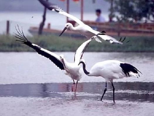 登上鹤岛,沿着木栈道行走,就可以见到湿地之神——丹顶鹤,运气好的话,欣赏一生难得一见的“世界绝活”丹顶鹤编队飞翔。也可以通过鹤岛上设置的望远镜远距离观赏候鸟。除了丹顶鹤之外,还有火烈鸟、东方白鹳、白枕鹤、蓑羽鹤、冠鹤等湿地鸟类。