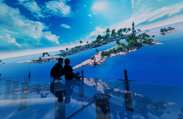 本馆是通过超大屏幕、多方位影像的巧妙融合,呈现裸眼3D场景,搭配震撼的地面震动反馈和令人惊叹的视觉效果,为您带来一次身临其境的穿越之旅。