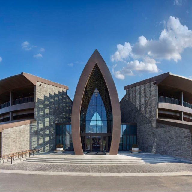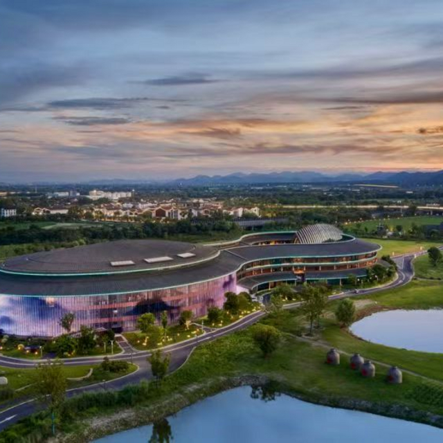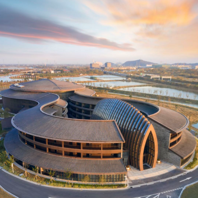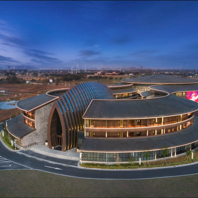乍一眼看,湖州潞村悦柳酒店的外观宛若福建土楼(空中俯瞰犹如象征着融合的莫比乌斯环),但其实,设计师是根据湖州的丝绸蚕茧来创作的。现代的玻璃设计,折射出自然世界的变幻,每当傍晚夕阳或灯光亮起时,酒店就像是空降于大地之上的艺术品,惊艳值拉满!